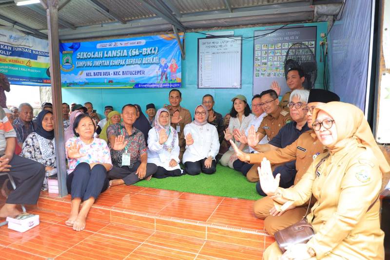 Dalam kunjungannya bersama sederet kementerian dan lembaga ke Kampung Jimpitan, Kelurahan Batujaya, Kecamatan Batuceper terkait Rumah Bersama Indonesia, Menteri Pemberdayaan Perempuan dan Perlindungan Anak (PPPA) Arifah Fauzi juga meresmikan Sekolah Lansia yang kini diterapkan di 13 kecamatan di Kota Tangerang, Selasa (11/2/25).