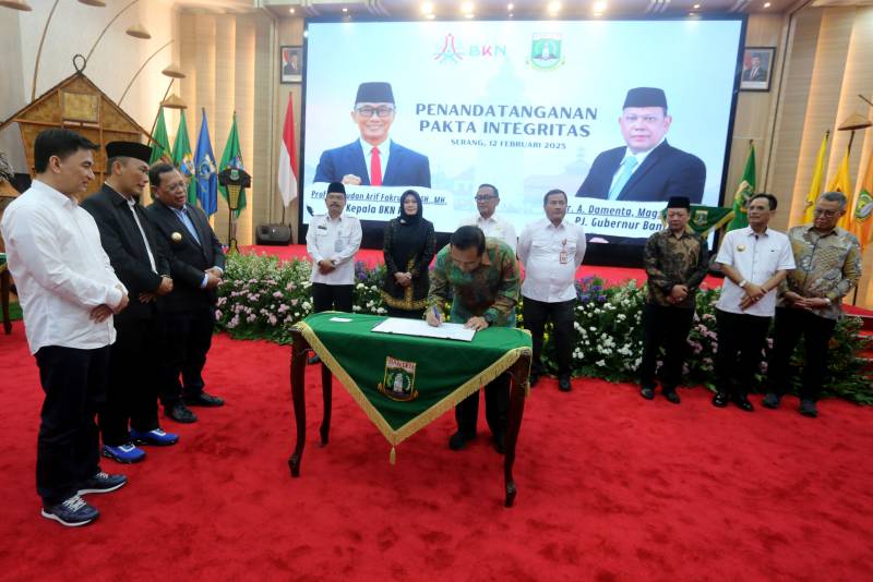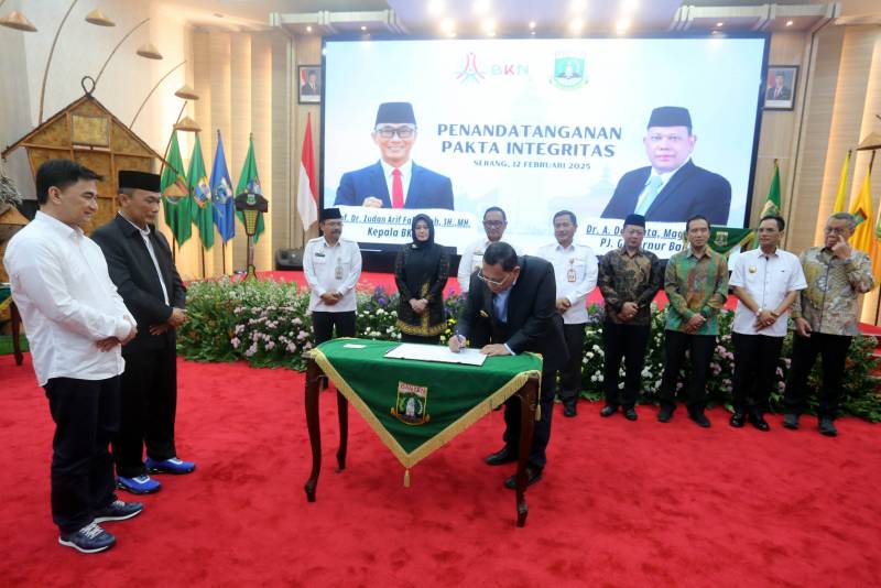 Penjabat (Pj) Wali Kota Tangerang, Dr. Nurdin, menghadiri acara Launching Penerapan Manajemen Talenta di Lingkungan Pemerintah Provinsi Banten yang berlangsung di Pendopo Gubernur Banten, Kota Serang, Rabu (12/2). Acara ini juga dirangkaikan dengan penandatanganan Pakta Integritas oleh Penjabat (Pj) Gubernur Banten, A. Damenta, Kepala Badan Kepegawaian Negara (BKN) Republik Indonesia, Zudan Rif Fakrulloh dan Bupati/Wali Kota se-Provinsi Banten.