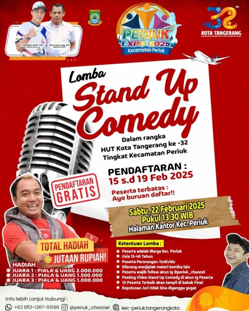 "Bagi warga Kecamatan Periuk, ayo kita bersama-sama meramaikan Periuk Expo 2025. Ikuti perlombaannya, meriahkan acara-acara lainnya. Seluruh informasi dapat dilihat di akun @periuk_channel," tutupnya.