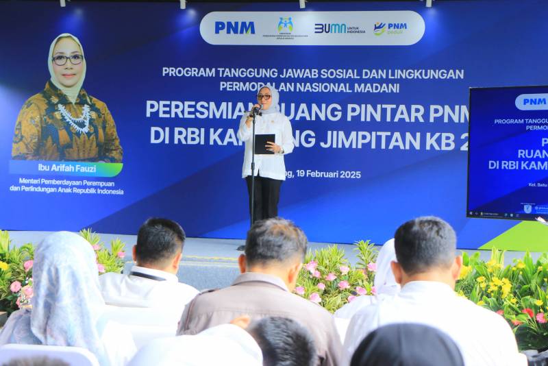 Terus mendukung peningkatan pemberdayaan anak dan perempuan serta masyarakat di wilayah Kota Tangerang, kali ini PT. Permodalan Nasional Madani atau PNM, bekerjasama dengan Kementerian Pemberdayaan Perempuan dan Perlindungan Anak Republik Indonesia, meresmikan Ruang Pintar PNM di RBI Kampung Jimpitan KB2 Kelurahan Batu Jaya, Kecamatan Batuceper, Kota Tangerang, Rabu (19/2/25).