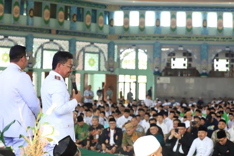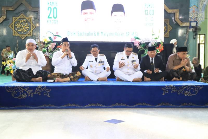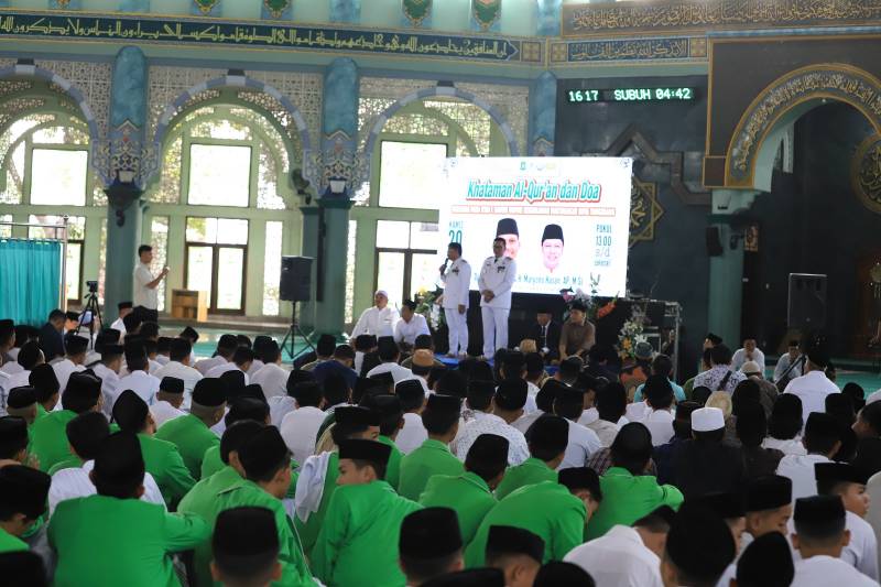 Pascadilantik Presiden Republik Indonesia Prabowo Subianto di Istana Negara Jakarta, Wali Kota Tangerang Sachrudin dan Wakil Wali Kota Tangerang Maryono Hasan menggelar khataman Al-Qur'an dan doa bersama kyai dan ratusan santri di Masjid Raya Al-A'zhom Kota Tangerang, Kamis (20/2/25).