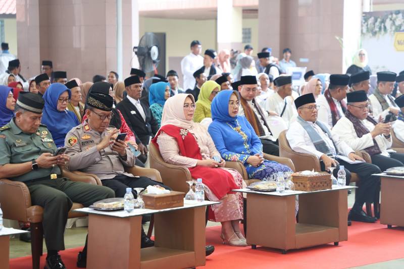 Pantauan di lapangan, puluhan pengantin dengan beragam usia terlihat antusias dan tak lepas dari senyum bahagia hingga akhir rangkaian acara.
