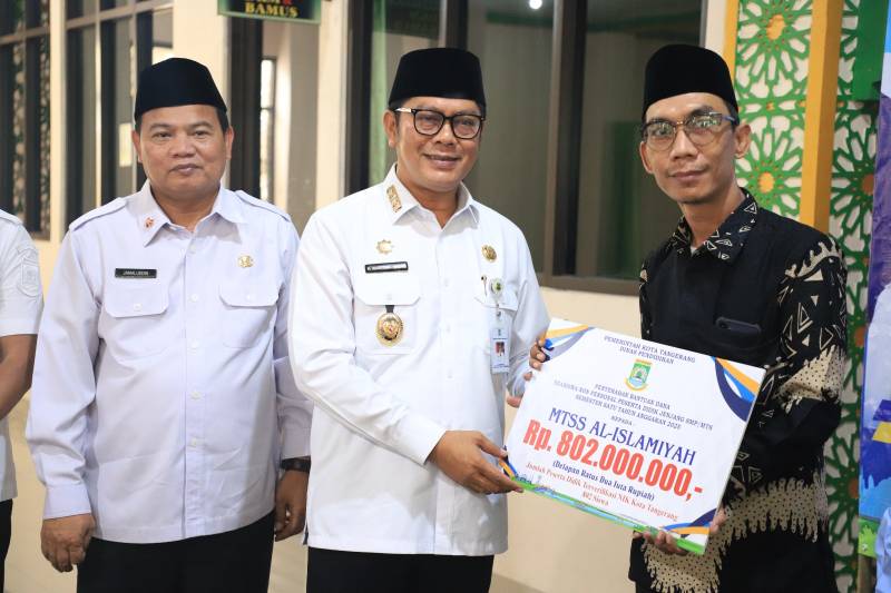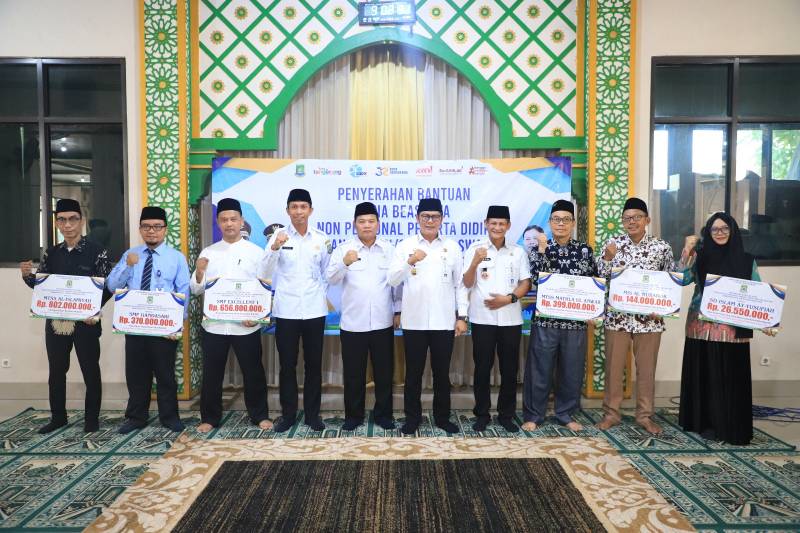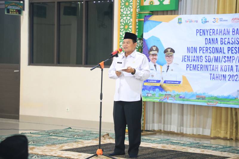 Pemerintah Kota (Pemkot) Tangerang melalui Dinas Pendidikan memberikan bantuan dana beasiswa nonpersonal dan personal untuk peserta didik jenjang SD, SMP swasta sederajat di Masjid Urwatul Wutsko Kota Tangerang pada Rabu (19/3/25).