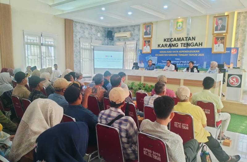 Kecamatan Karang Tengah melakukan sosialisasi data kependudukan untuk meningkatkan aktivasi Identitas Kependudukan Digital (IKD), di Aula Kecamatan Karang Tengah, Rabu (07/05/25).