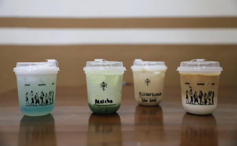 Menu andalan seperti jiwa mantan aren, matcha, daddy die blue dan banyak pilihan coffee dan noncoffee kainnya. Tak terkecuali, pilihan makanannya, seperti mi nyemek hingga chicken salted egg yang bukan hanya menggoda dari namanya, tapi juga punya rasa yang serius enak.