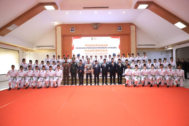 Sebanyak 50 anggota Pasukan Pengibar Bendera (Paskibra) Kota Tangerang Tahun 2025 resmi dikukuhkan Wali Kota Tangerang Sachrudin di Ruang Al Amanah, Pusat Pemerintahan Kota Tangerang, Jumat (15/8/25).