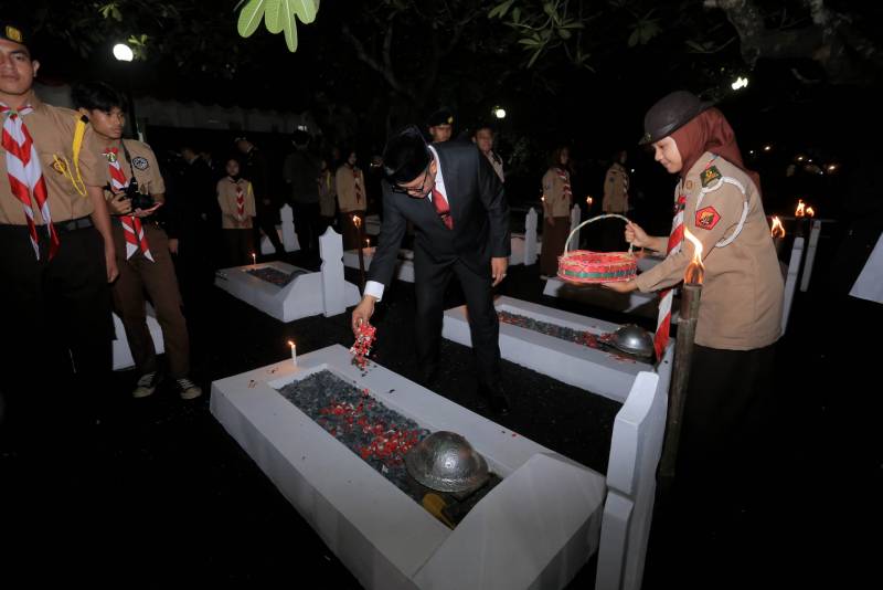 Apel Kehormatan dan Renungan Suci diakhiri dengan prosesi tabur bunga di pusara para pahlawan sebagai simbol penghormatan dan pengingat akan jasa-jasa para pahlawan yang telah gugur.
