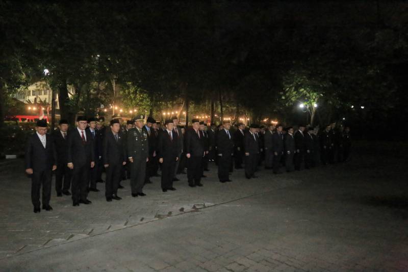 Wali Kota Tangerang, H. Sachrudin, bersama Wakil Wali Kota H. Maryono Hasan dan Jajaran Forkopimda mengikuti Apel Kehormatan dan Renungan Suci untuk mengenang arwah dan jasa pahlawan kemerdekaan Indonesia yang dipimpin oleh Kapolres Metro Tangerang Kota, Dr. Raden Muhammad Jauhari, S.H., S.I.K., M.Si., di Taman Makam Pahlawan (TMP) Taruna Kota Tangerang, Minggu (17/8) dini hari.