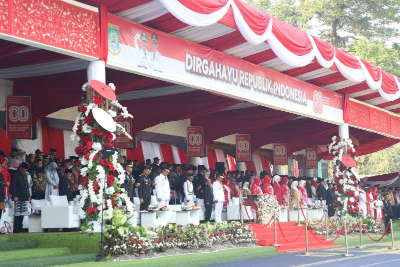 Pemerintah Kota (Pemkot) Tangerang menggelar Upara Peringatan Hari Ulang Tahun (HUT) ke-80 Republik Indonesia secara khidmat. Berlangsung di Lapangan Ahmad Yani, pada Minggu (17/8/25), upacara pengibaran Peringatan Kemerdekaan Republik Indonesia dipimpin langsung oleh Inspektur Upacara Wali Kota Tangerang Sachrudin dengan Komandan Upacara Wakasat Resnarkoba Polres Metro Tangerang Kota Kompol Arif Syaifudin.