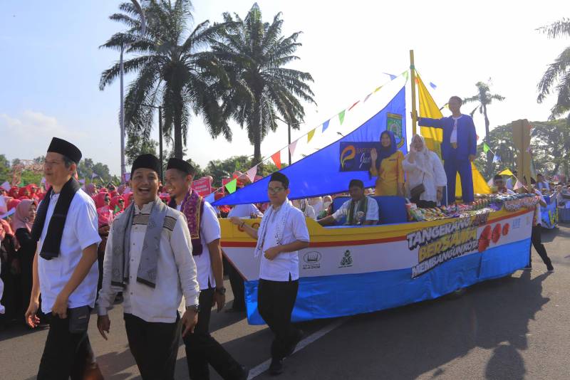 Wali Kota Tangerang, H. Sachrudin, yang hadir melepas peserta arak-arakan, menyampaikan rasa syukur dan bangganya.