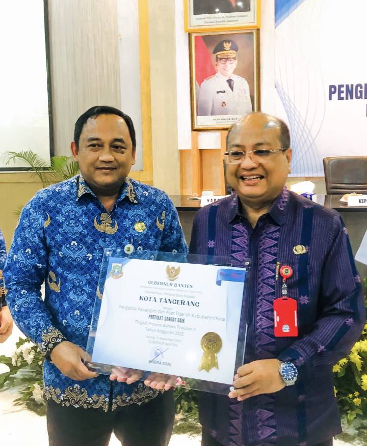 Pemerintah Provinsi Banten memberikan penghargaan kepada Badan Pengelola Keuangan Daerah (BPKD) Kota Tangerang atas kinerjanya dalam pengelolaan keuangan dan aset daerah tahun anggaran 2025.