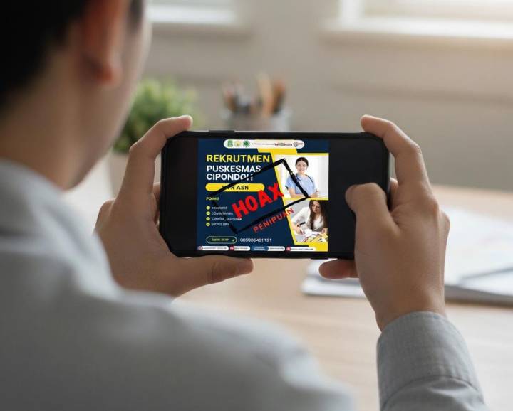 “Dalam informasi yang tersebar melalui pesan singkat dan media sosial, disebutkan bahwa Puskesmas Cipondoh sedang membuka lowongan tenaga Non ASN dengan mencantumkan nomor narahubung 0838-3648-1151. Dapat dipastikan bahwa informasi tersebut tidak benar atau hoaks,” tegas dr. Dini.