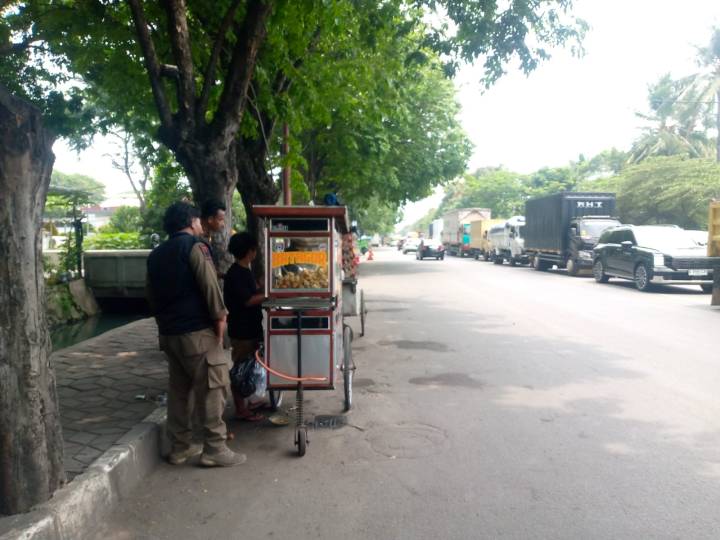 Dalam pelaksanaan monitoring, petugas memberikan imbauan langsung kepada para pedagang agar tidak berjualan di area trotoar yang seharusnya diperuntukkan bagi pejalan kaki.