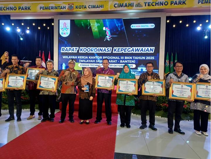 Komitmen tersebut ditunjukkan melalui penandatanganan dokumen “Komitmen Manajemen Talenta” pada Rapat Koordinasi (Rakor) Kepegawaian Wilayah Kerja Kantor Regional III BKN Tahun 2025 (Wilayah Jawa Barat–Banten) yang berlangsung di Cimahi Techno Park, Jawa Barat, Kamis (09/10/2025).