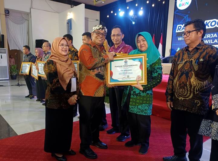 Adapun penghargaan yang diterima Pemkot Tangerang melalui jajaran BKPSDM Kota Tangerang pada Rakor kali ini, meliputi Peringkat I Kategori Penyelesaian Instansi yang Mengintegrasikan Data dengan Progres 100 %, Peringkat II Kategori Pengelola Kepegawaian Terbaik di Wilayah Banten, Peringkat III Kategori Pelayanan Kenaikan Pangkat dan Mitra Kerja Terbaik Kategori Penerapan Manajemen Talenta ASN di Wilayah Jawa Barat dan Banten.