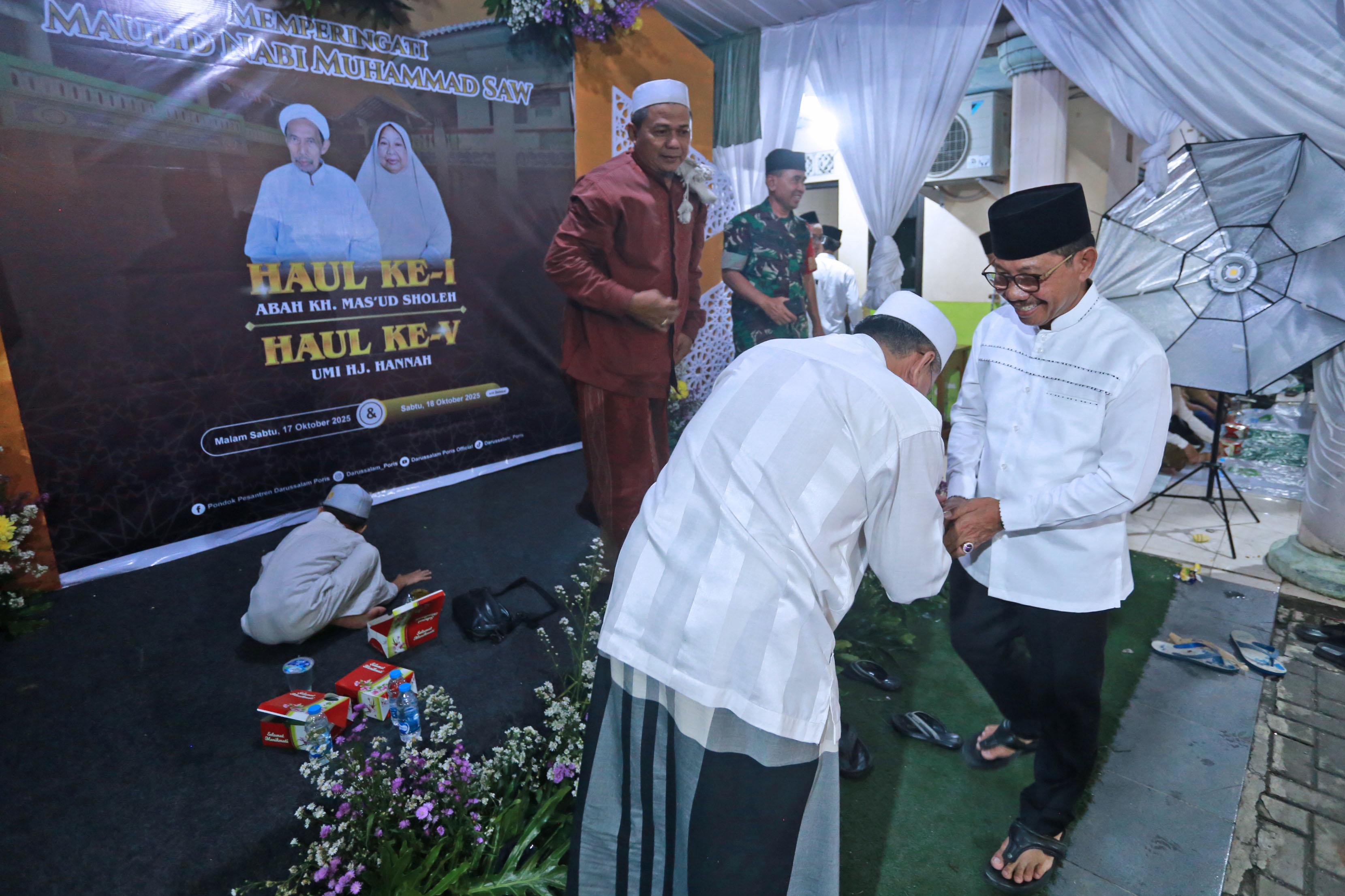 Ajakan tersebut disampaikan Sachrudin, saat menghadiri Haul ke-1 Abah K.H. Mas’ud Sholeh dan Haul ke-5 Umi Hj. Hannah di Pondok Pesantren Darussalam, Poris Jaya, Kecamatan Batuceper, Jumat malam (17/10/2025).