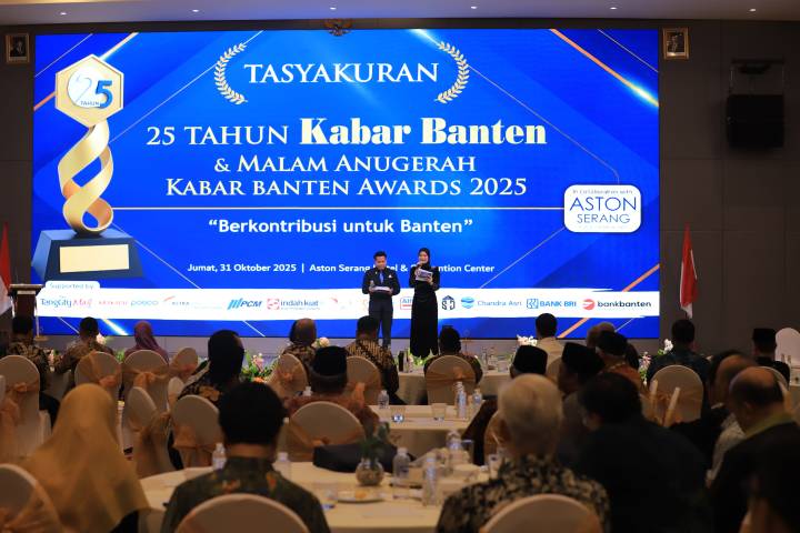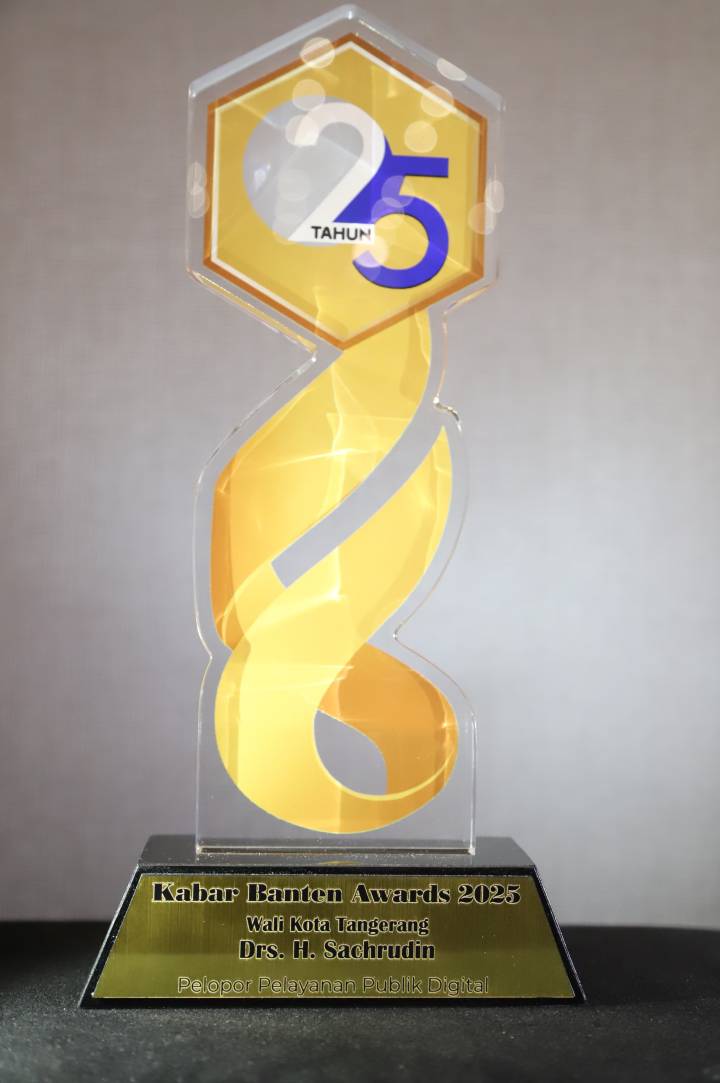 Wali Kota Tangerang Sachrudin menerima penghargaan bergengsi sebagai tokoh Berpengaruh 2025 kategori Pemerintah Daerah Pelopor Pelayanan Publik Digital dalam Malam Anugerah Kabar Banten Award 2025 yang diselenggarakan meriah di Hotel Aston Serang, Jumat (31/10/25) malam.