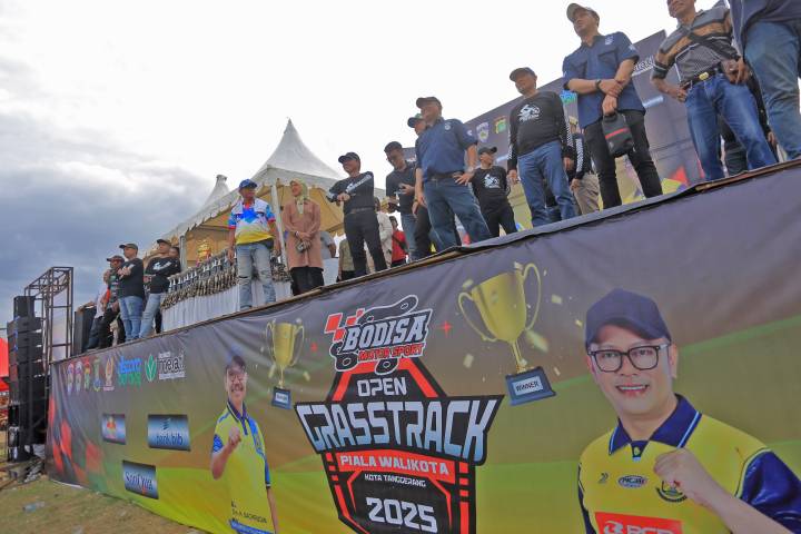 Penutupan Kejuaraan Nasional (Kejurnas) Grasstrack Motorcross Championship Piala Wali Kota Tangerang Tahun 2025 di Sirkuit Motorcross Selapajang, Kecamatan Neglasari, berlangsung meriah dan penuh semangat, Minggu (9/11/2025).