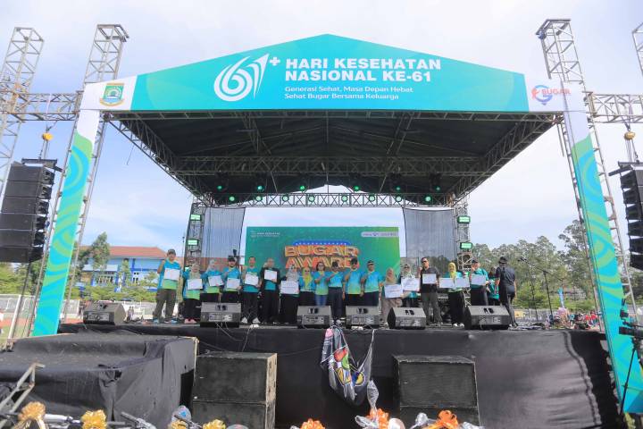 Acara berlangsung meriah dengan rangkaian kegiatan seperti senam bersama, gerak jalan sehat (fun walk), pembagian doorprize, serta pameran stan kesehatan dan UMKM.
