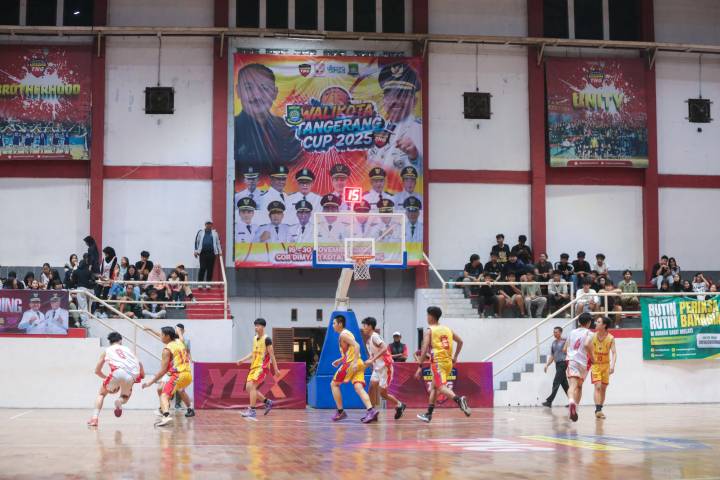 Wali Kota Tangerang, H. Sachrudin, menghadiri sekaligus menutup Kejuaraan Bola Basket Piala Wali Kota Tangerang Tahun 2025 yang digelar di GOR Dimyati, Minggu (30/11/2025).