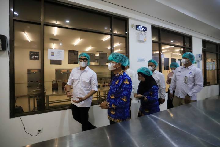 Ia juga meninjau dapur produksi, termasuk kebersihan ruang masak, sumber air, dan penyimpanan. Dimyati menilai kondisi dapur cukup baik, namun menekankan pentingnya ketepatan distribusi agar makanan tetap segar.