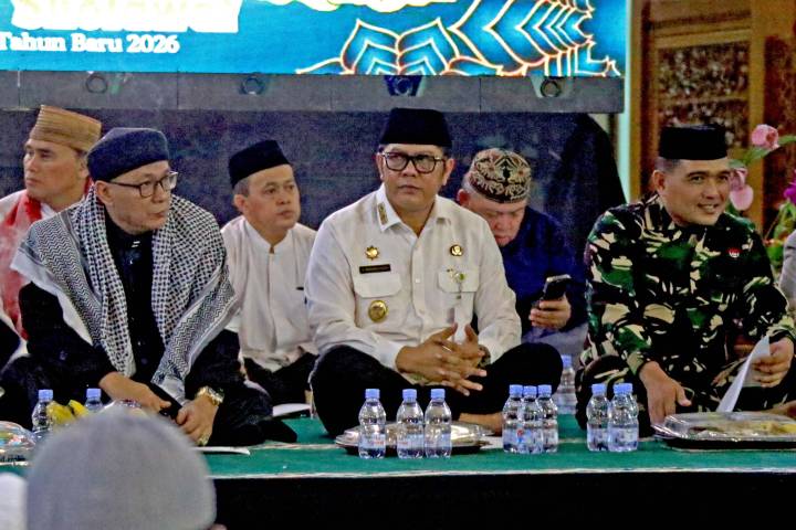 Wakil Wali Kota Tangerang, H. Maryono Hasan, bersama masyarakat dan jajaran Pemerintah Kota (Pemkot) Tangerang mengikuti kegiatan Muhasabah, Zikir, dan Salawat Menyambut Tahun Baru 2026 yang digelar di Masjid Raya Al-A’zhom, Kota Tangerang, Rabu malam (31/12/2025).