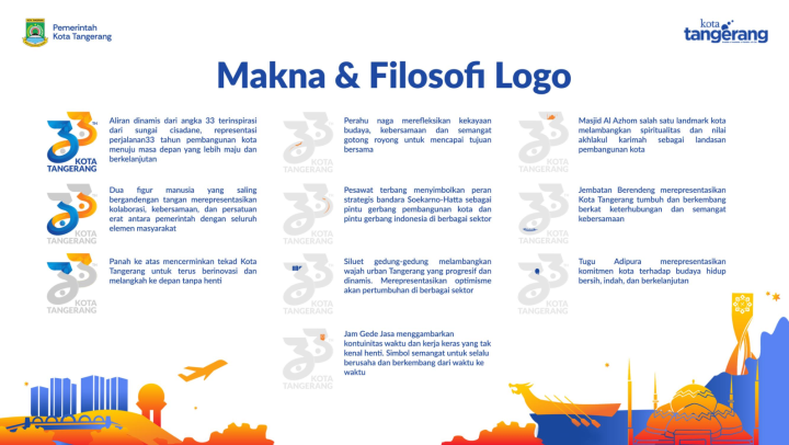 Sebagai informasi, logo HUT ke-33 Kota Tangerang tahun ini sarat makna yang merepresentasikan perjalanan panjang pembangunan kota, nilai kebersamaan, serta semangat pelayanan kepada masyarakat.