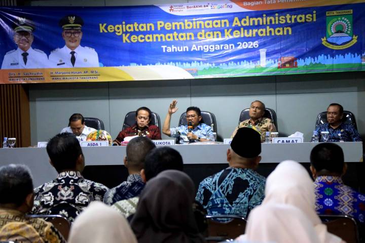 Pemerintah Kota Tangerang kembali menggelar Pembinaan Administrasi Aparatur Wilayah Tahun 2026 sebagai upaya memperkuat kualitas tata kelola pemerintahan di tingkat kecamatan dan kelurahan. Kegiatan yang berlangsung di Aula Kecamatan Pinang, Kamis (22/01/2026), ini dibuka oleh Wali Kota Tangerang, H. Sachrudin, dan diikuti aparatur wilayah Kecamatan Pinang dan Cipondoh.