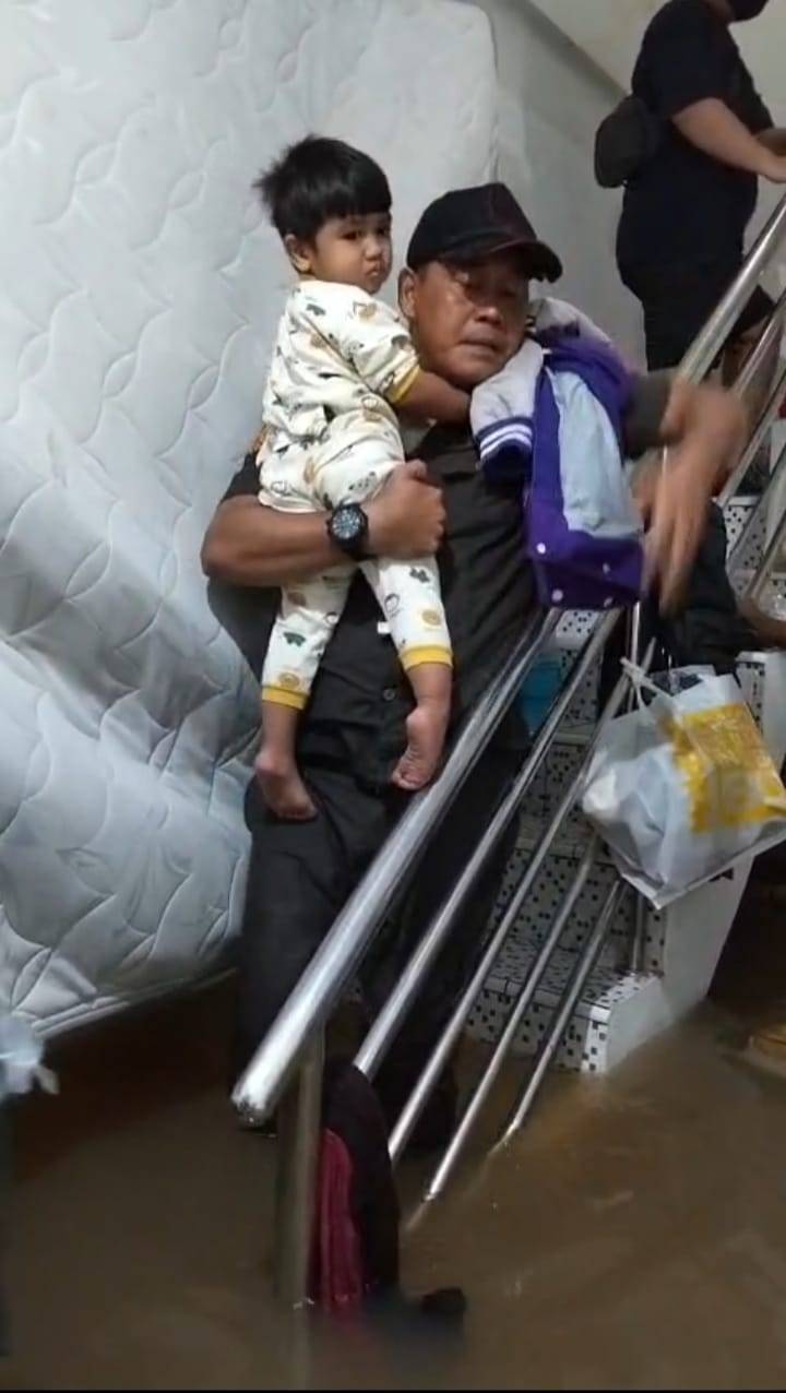 "Ketinggian air saat ini masih bertahan di angka 140 sentimeter. Kami mengevakuasi empat bayi dan balita, serta satu orang tua yang sakit untuk cuci darah. Saat ini sudah ada 620 warga yang mengungsi di aula kelurahan," jelas Agung saat ditemui di lokasi kejadian.