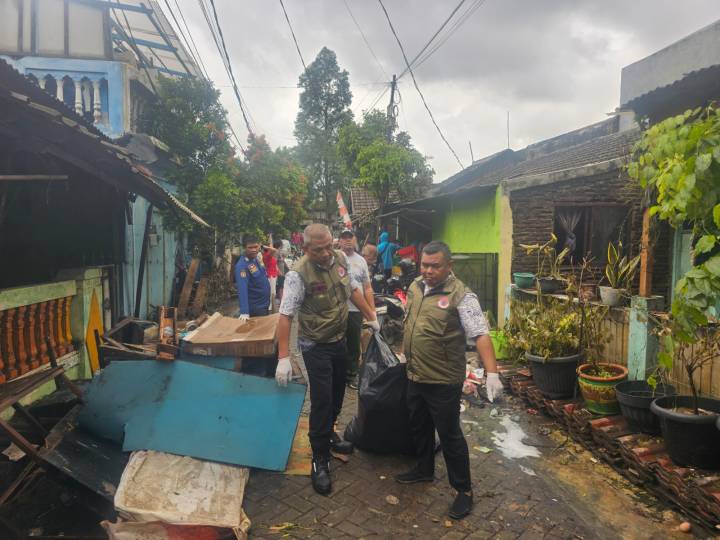 Upaya pembersihan sisa banjir di wilayah Kecamatan Periuk, Kota Tangerang terus dilakukan secara intensif melalui sinergi lintas instansi, Kamis (29/1/26).