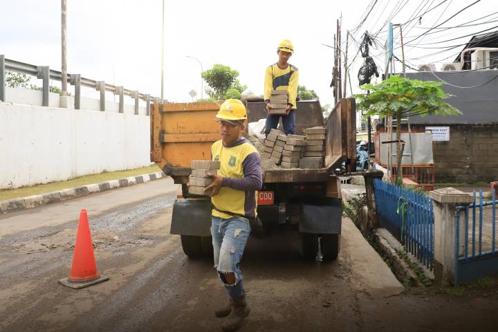 Pemkot Tangerang telah melakukan penambahan di sejumlah titik yang mengalami kerusakan parah menggunakan material paving block menyesuaikan dengan kondisi musim penghujan yang masih melanda Kota Tangerang dalam beberapa waktu terakhir.