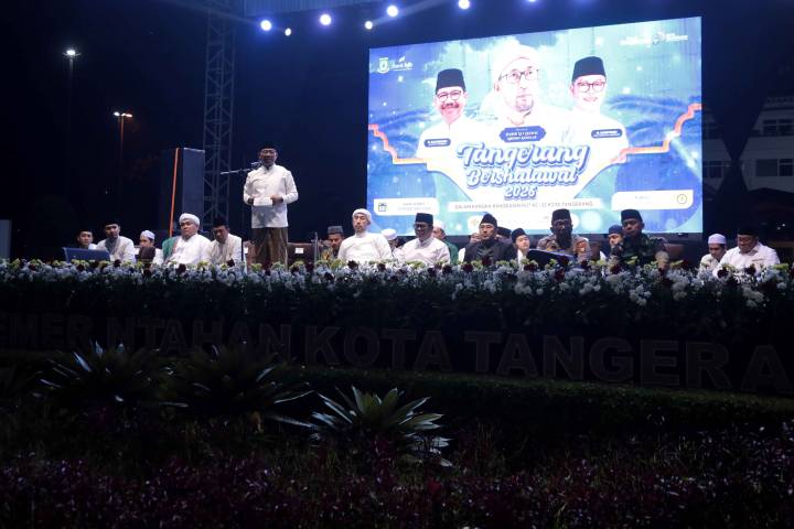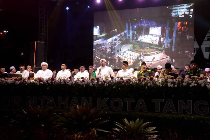 Lautan manusia memadati Taman Elektrik, Pusat Pemerintahan Kota Tangerang, Rabu malam (11/2/2026). Dengan penuh khidmat, puluhan ribu jemaah dari berbagai penjuru Kota Tangerang bahkan luar daerah larut dalam lantunan selawat pada gelaran Tangerang Berselawat 2026, yang digelar sebagai ungkapan syukur atas HUT ke-33 Kota Tangerang.