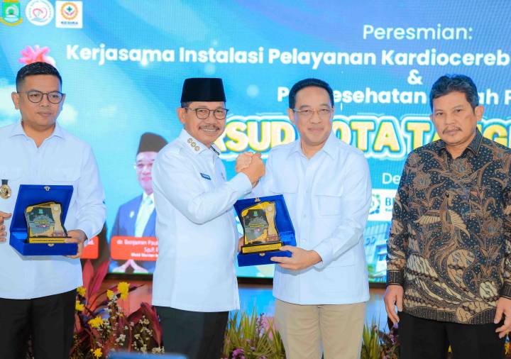 Peresmian kerja sama Instalasi Pelayanan Kardioserebrovaskular Terpadu (IPKT) antara RSUD Kota Tangerang dan BPJS Kesehatan dilakukan pada Sabtu (14/2/2026) oleh Wali Kota Tangerang H. Sachrudin bersama Wakil Menteri Kesehatan RI dr. Benjamin Paulus Octavianus, Gubernur Banten Andra Soni, serta Direktur Utama BPJS Kesehatan Ali Ghufron Mukti.