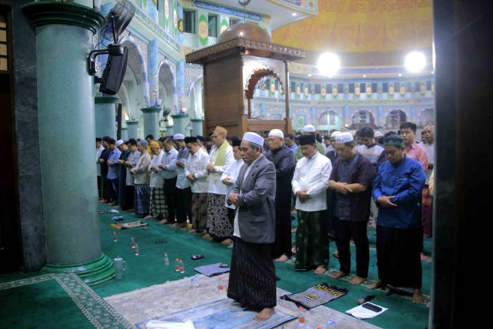 Suasana khusyuk dan hangat menyelimuti Masjid Raya Al-A'zhom saat Wali Kota Tangerang H. Sachrudin melaksanakan Salat Isya dan Tarawih berjamaah bersama masyarakat, Kamis malam (19/02/2026).