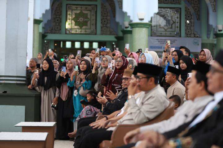 Sejak sore, ribuan warga tampak memadati kawasan Masjid Raya Al-A’zhom. Selain berburu kuliner dan menikmati suasana festival, pengunjung juga menantikan salah satu agenda paling dinanti, yakni penampilan hiburan dari penyanyi religi Alma Esbeye menjelang waktu berbuka puasa.