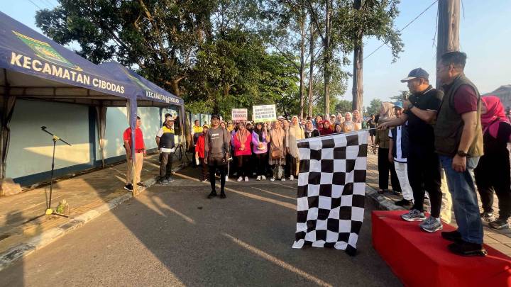 Sekretaris Daerah (Sekda) Kota Tangerang, Herman Suwarman, secara resmi melepas ribuan peserta Fun Walk dalam rangka Pekan Raya Cibodas yang mengambil titik mula di Alun-Alun Cibodas, Minggu (19/04/2026).