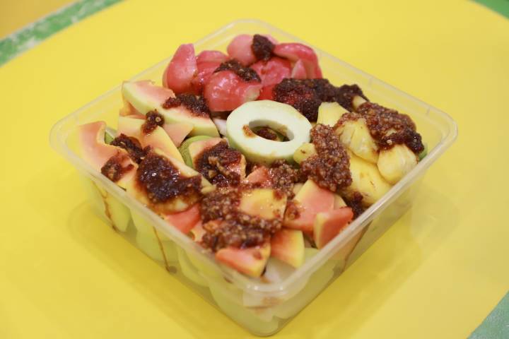 Tak hanya itu, tersedia pula berbagai pilihan bumbu rujak dengan enam varian rasa, seperti bangkok, asamboi, kacang, hingga cabai garam terasi, yang dapat disesuaikan dengan preferensi masing-masing.