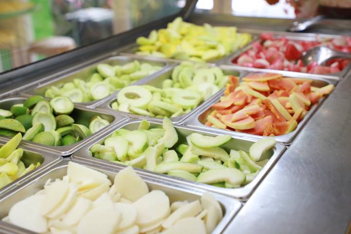 Mengusung konsep seperti salad bar, pengunjung bisa bebas memilih potongan buah sesuai selera, mulai dari mangga, lengkeng, hingga buah segar lainnya.