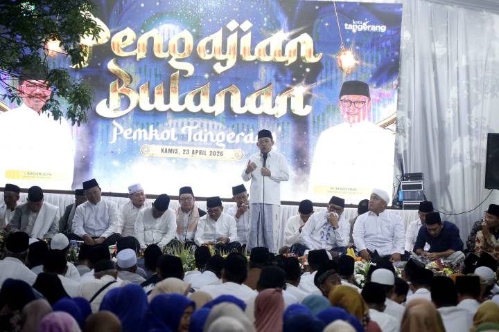 Komitmen Pemerintah Kota (Pemkot) Tangerang dalam membangun masyarakat yang berakhlakul karimah terus diwujudkan, di antaranya melalui pengajian bulanan bersama masyarakat. Kegiatan tersebut kembali digelar di kediaman Wali Kota Tangerang, H. Sachrudin, di Cipondoh, Kamis malam (24/04/2026).