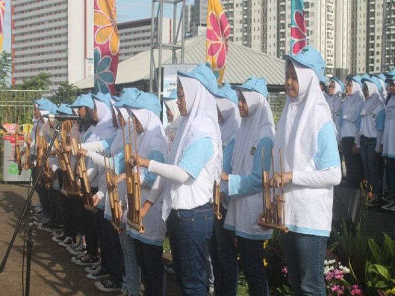 Angklung adalah alat musik tradisional masyarakat Sunda. Namun saat ini alat musik yang terbuat dari bambu ini sudah banyak dimainkan di berbagai daerah. Tidak terkecuali di Kota Tangerang.Selain itu, alat musik ini juga sangat cocok dikolaborasikan dengan alat musik modern lainnya. Seperti yang ditunjukkan oleh puluhan siswa-siswi SMPN 1 Kota Tangerang, dalam kegiatan Hari Menanam Pohon Indonesia tingkat Kota Tangerang yang dilaksanakan di sempadan Danau Alam Sutera, Kecamatan Pinang pada Kamis (15/12/2016).Kemarin angklung-angklung ini dimainkan dengan piano. Salah satu lagu yang dinyanyikan adalah "You Raise Me Up". Denting piano yang berpadu dengan merdu suara angklung terdengar mengalun syahdu. Bahkan Walikota Tangerang H. Arief R Wismansyah terlihat ikut larut bernyanyi bersama-sama dengan tamu undangan yang hadir di mana diantaranya berasal dari Polres Metro Tangerang Kota, Kodim 0506, pejabat eselon hingga para petinggi pengembang PT Alam Sutera, Ketua REI.Sebelumnya, perwakilan siswa memang mengajak para tamu undangan yang hadir untuk ikut menyanyi bersama-sama. "Mari Bapak Walikota boleh kita menyanyi bersama-sama," terang siswa tersebut.Setidaknya ada tiga lagu yang dinyanyikan. Dan begitu penampilan siswa-siswi tersebut selesai, aplause panjang akhirnya mereka terima.
