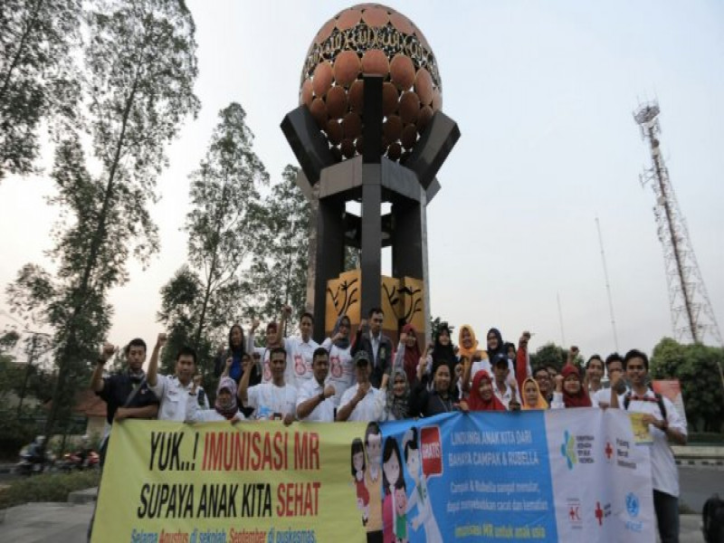 Palang Merah Indonesia (PMI) Kota Tangerang lakukan kampanye bahaya penyakit Campak dan Rubella di wilayah kota Tangerang.