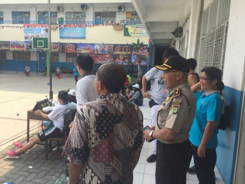 Dalam kegiatan tersebut kapolsek meninjau langsung kegiatan perlombaan futsal di lapangan Sekolah yang dilaksanakan dalam rangka memeriahkan hari ulang tahun Sekolah Santa patricia yang ke 23 tahun.