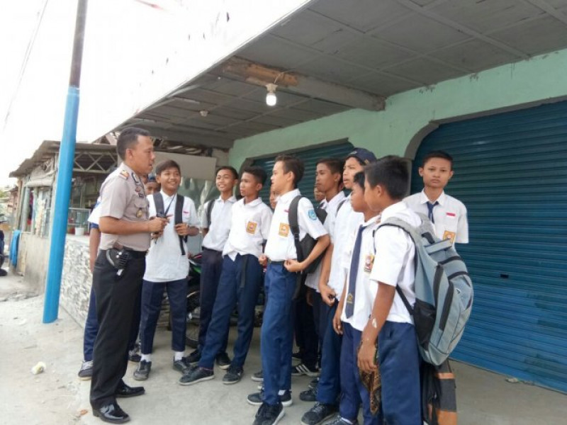 POLKISS Hari Senin Tgl 23 Okt 2017 Jam 13:00 wib Lokasi : jl.raya Pakuhaji Kapolsek Pakuhaji AKP SUYATNO,SH menyambangi Pelajar SMP 1 Pakuhaji sedang nongkrong dipinggir jalan sepulang sekolah. Dalam kesempatan tersebut Kapolsek menyampaikan agar selesai sekolah segera pulang ke rumah masing-masing dan tidak nongkrong dipinggir jalan karena akan berpeluang atau berpotensi melakukan hal-hal yang merugikan diri sendiri maupun orang lain dan peluang tersebut adalah tawuran.