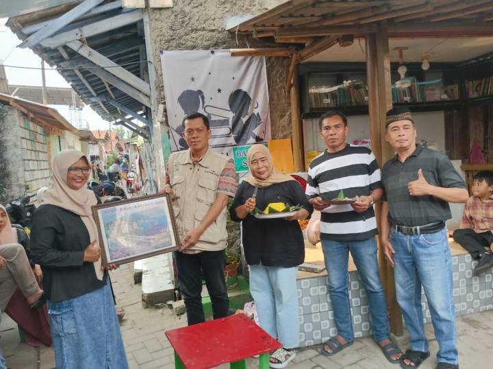Foto bersama pengurus Pojok Baca Barudak Saung dengan Lurah Pabuaran Tumpeng Khalik Ferdiansyah dan Ketua KIM Rukun Saluyu Sri Aminarti di Kelurahan Pabuaran Tumpeng, Kecamatan Karawaci, Kota Tangerang, Provinsi Banten, Minggu (14/09/24).
