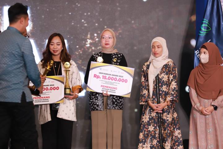 Owner Cokelatin, Irena Surosoputra (tengah) mendapatkan penghargan UKM Pangan Award 2025 di ICE BSD