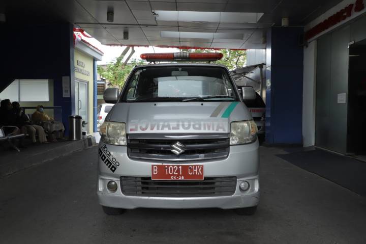 Mobil ambulans gratis terlihat siaga di Instalasi Gawat Darurat (IGD) RSUD Kota Tangerang, Provinsi Banten.