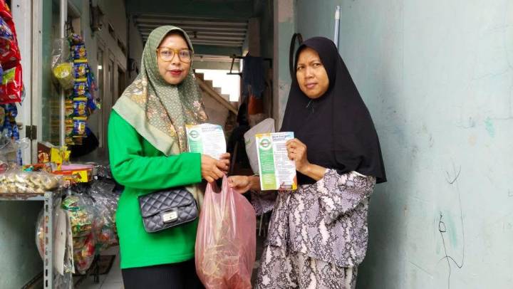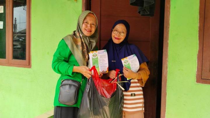 Kader Bank Sampah Sakura RW 02, Kelurahan Karang Timur, Kecamatan Karang Tengah, Kota Tangerang sedang jemput bola mengambil sampah ke rumah warga.