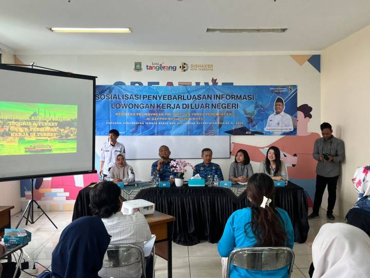 Peserta Sosialisasi Penyebarluasan Informasi Lowongan Kerja di Luar Negeri, di Aula Kantor Disnaker, Kota Tangerang, Rabu (17/9/25).
