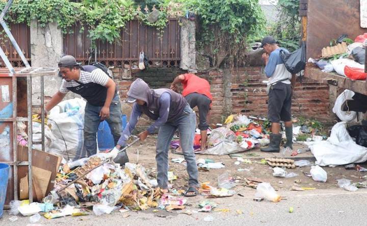 Petugas saat melakukan pembongkaran TPS Liar di Kota Tangerang.