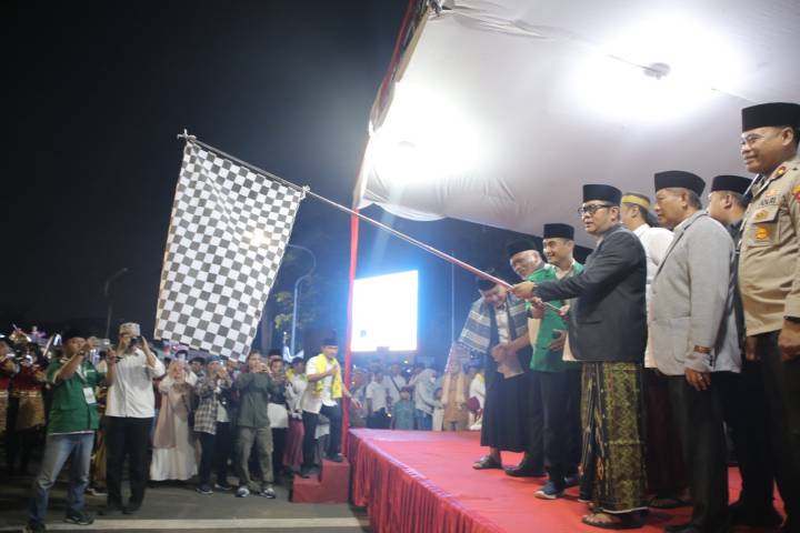 Wakil Wali Kota Tangerang Maryono Hasan didampingi Sekretaris Daerah (Sekda) Kota Tangerang Herman Suwarman, melepas rombongan Pawai Obor, Suasana kemeriahan Pawai Obor, dalam rangkaian Festival Maulid Nusantara 2, di Taman Elektrik, Kota Tangerang, Provinsi Banten, Selasa (23/9/25).